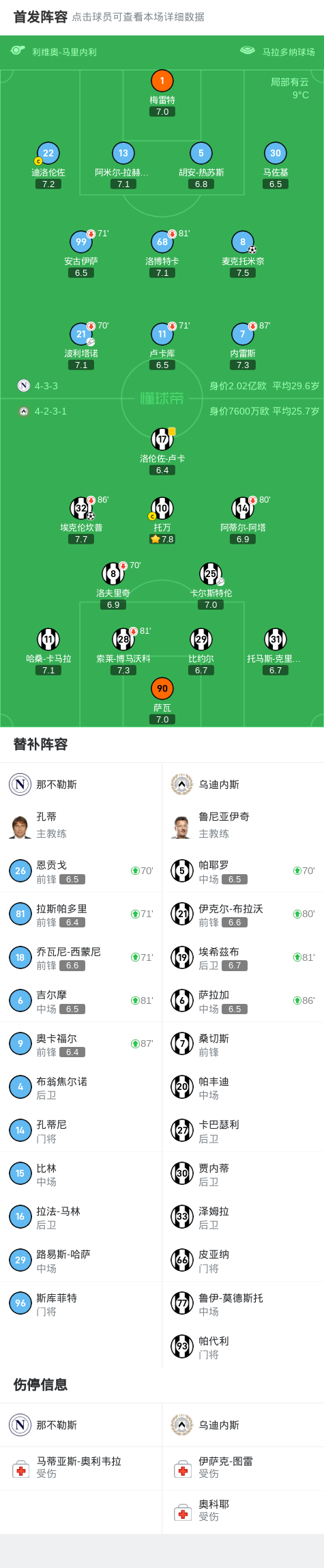 比赛中双方展开了激烈的对攻,球场上充满了紧张的氛围。那不勒斯队在前场展现出了不俗的配合和团队意识,试图通过多次进攻威胁对手的球门。而乌迪内斯则在防守端表现出色,不断化解对手的进攻,并通过反击寻找机会。整场比赛,双方的进攻和防守都展现出了各自的特点,让观众看得热血沸腾。